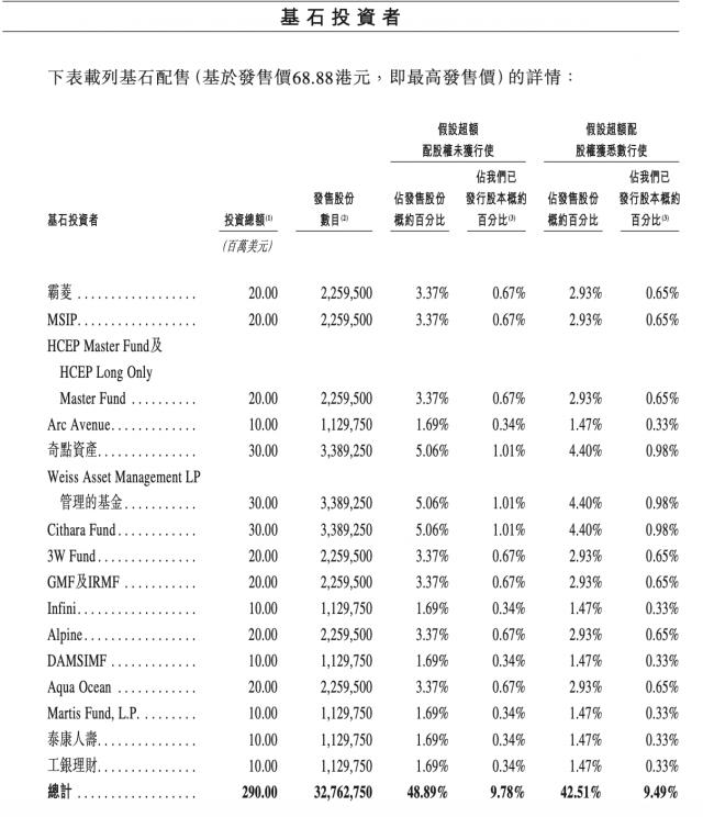 基于公司技术水平和市场地位,剑桥科技此次港股发行堪称资本市场盛宴:全球发售 6701 万股,发行价为 68.88 港元,国泰君安国际担任独家保荐人。最引人瞩目的是其"全明星"投资者阵容——涵盖霸菱、摩根士丹利等国际资管巨头,HCEP(红杉二级)等顶级私募,再加上泰康人寿、工银理财等大牌,剑桥科技这次 IPO 共有 16 名基石投资者,他们合计投资 2.90 亿美元,认购股份占此次发行总数的 48.89%。