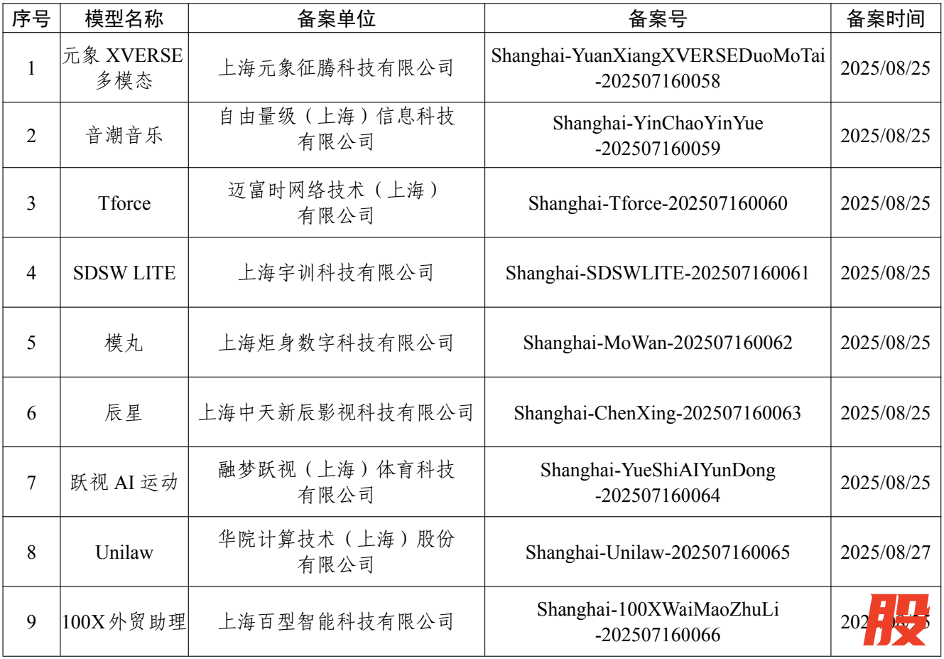 上海市新增9款已完成备案的生成式人工智能服务上海市新增9款已完成备案的生成式人工智能服务