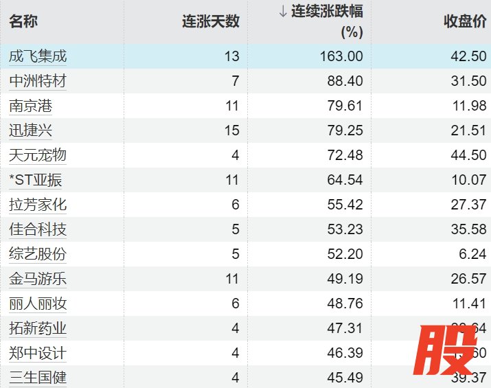 70只个股连续上涨5个交易日及以上70只个股连续上涨5个交易日及以上